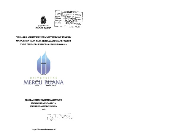 NOVITASARI, NOVITASARI (2010) PENGARUH ASIMETRI INFORMASI TERHADAP PRAKTIK MANAJEMEN LABA PADA PERUSAHAAN MANUFAKTUR YANG TERDAFTAR DI BURSA EFEK INDONESIA. S2 thesis, Universitas Mercu Buana Jakarta.