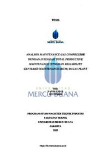 UMAR, YANDI (2025) ANALISIS MAINTENANCE GAS COMPRESSOR DENGAN INTEGRASI TOTAL PRODUCTIVE MAINTENANCE (TPM) DAN REALIBILITY CENTERED MAINTENANCE (RCM) DI GAS PLANT. S2 thesis, Universitas Mercu Buana Jakarta.