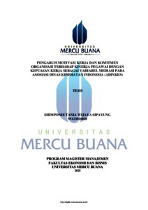 WIJAYA SIPAYUNG, SHIMPONIE TANIA (2025) PENGARUH MOTIVASI KERJA DAN KOMITMEN ORGANISASI TERHADAP KINERJA PEGAWAI DENGAN KEPUASAN KERJA SEBAGAI VARIABEL MEDIASI PADA ASOSIASI DINAS KESEHATAN INDONESIA (ADINKES). S1 thesis, UNIVERSITAS MERCU BUANA - BUNCIT.