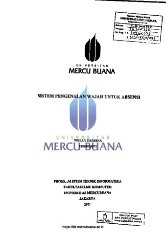 DESRINA, WELLY (2011) SISTEM PENGENALAN WAJAH UNTUK ABSENSI. S1 thesis, Universitas Mercu Buana Jakarta.
