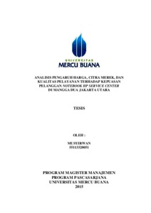 MUSYIRWAN, MUSYIRWAN (2015) ANALISIS PENGARUH HARGA, CITRA MEREK, DAN KUALITAS PELAYANAN TERHADAP KEPUASAN PELANGGAN NOTEBOOK HP SERVICE CENTER DI MANGGA DUA JAKARTA UTARA. S2 thesis, UNIVERISTAS MERCU BUANA - BUNCIT.