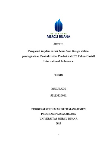 MULYADI, MULYADI (2015) Pengaruh implementasi Lean Line Design dalam peningkatkan Produktivitas Produksi di PT FaberCastell International Indonesia. S2 thesis, UNIVERSITAS MERCU BUANA - BUNCIT.
