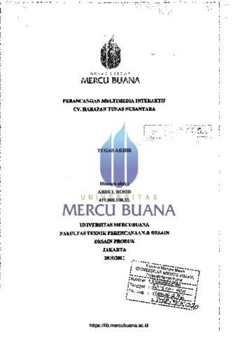 ROSID, ABDUL (2011) PERANCANGAN MULTIMEDIA INTERAKTIF CV. HARAPAN TUNAS NUSANTARA. S1 thesis, Universitas Mercu Buana Jakarta.