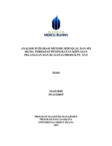 MASURIH, MASURIH (2015) ANALISIS INTEGRASI METODE SERVQUAL DAN SIX SIGMA TERHADAP PENINGKATAN KEPUASAN PELANGGAN DAN KUALITAS PRODUK PT. XYZ. S2 thesis, UNIVERSITAS MERCU BUANA - BUNCIT.