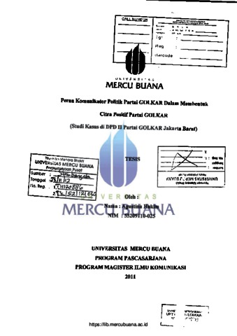 HAKIM, AGUSTINA (2011) PERAN KOMUNIKATOR POLITIK PARTAI GOLKAR DALAM MEMBENTUK CITRA POSITIF PARTAI GOLKAR (STUDI KASUS DI DPD II PARTAI GOLKAR JAKARTA BARAT). S2 thesis, Universitas Mercu Buana Jakarta.