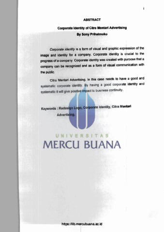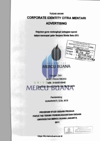 PRIHATMOKO, SONY (2011) CORPORATE IDENTITY CITRA MENTARI ADVERTISING. S1 thesis, Universitas Mercu Buana Jakarta.