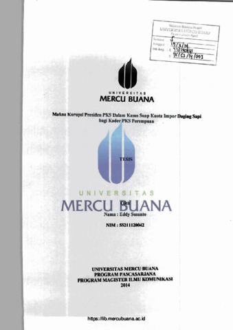 SUSANTO, EDDY (2014) MAKNA KORUPSI PRESIDEN PKS DALAM KASUS SUAP KUOTA IMPOR DAGING SAPI BAGI KADER PKS PEREMPUAN. S2 thesis, Universitas Mercu Buana Jakarta.