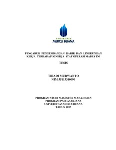 MURWANTO, TRIADI (2015) PENGARUH PENGEMBANGAN KARIR DAN LINGKUNGAN KERJA TERHADAP KINERJA STAF OPERASIMABESTNI. S2 thesis, UNIVERSITAS MERCU BUANA - BUNCIT.