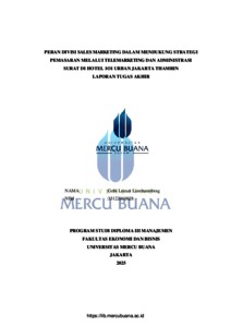 LUMBANTOBING, GEBI LESTARI (2025) PERAN DIVISI SALES MARKETING DALAM MENDUKUNG STRATEGI PEMASARAN MELALUI TELEMARKETING DAN ADMINISTRASI SURAT DI HOTEL 1O1 URBAN JAKARTA THAMRIN. D3 thesis, Universitas Mercu Buana Jakarta.