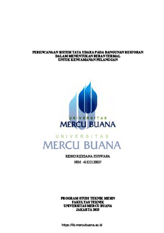 KUSWARA, RIDHO RIZKIANA (2025) PERENCANAAN SISTEM TATA UDARA PADA BANGUNAN RESTORAN DALAM MENENTUKAN BEBAN TERMAL UNTUK KENYAMANAN PELANGGAN. S1 thesis, Universitas Mercu Buana Jakarta.