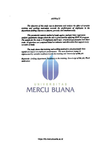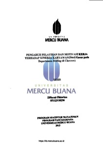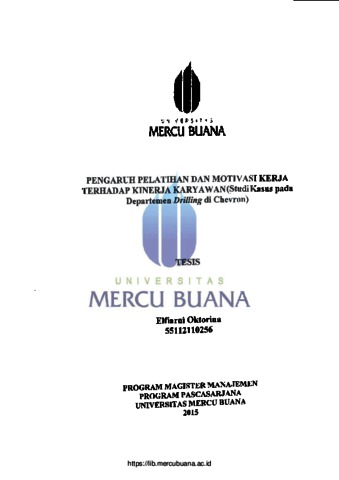 OKTORINA, ELFIARNI (2015) PENGARUH PELATIHAN DAN MOTIVASI KERJA TERHADAP KINERJA KARYAWAN (STUDI KASUS PADA DEPARTEMEN DRILLING DI CHEVRON). S2 thesis, Universitas Mercu Buana Jakarta.