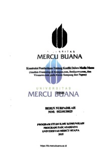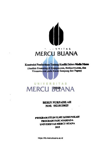 NURPADILAH, BEBEN (2015) KONSTRUKSI PEMBERITAAN TENTANG KONFLIK DALAM MEDIA MASSA (Analisis Framing di Kompas.com, Detiknews.com, dan Vivanews.com pada Kasus Sampang dan Papua). S2 thesis, Universitas Mercu Buana Jakarta.