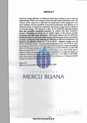 | Uncontrolled Keywords: | Tepung terigu, efisiensi energi listrik, TPM, OEE. |
