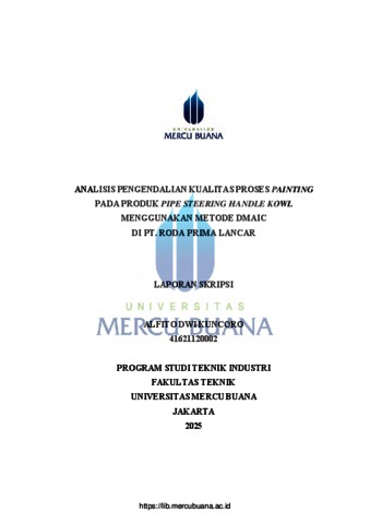 KUNCORO, ALFITO DWI (2025) ANALISIS PENGENDALIAN KUALITAS PROSES PAINTING PADA PRODUK PIPE STEERING HANDLE KOWL MENGGUNAKAN METODE DMAIC DI PT. RODA PRIMA LANCAR. S1 thesis, Universitas Mercu Buana Jakarta.