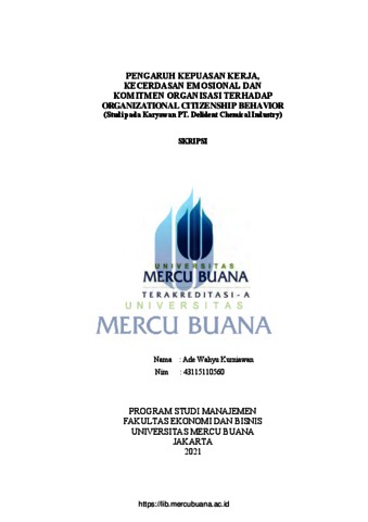 KURNIAWAN, ADE WAHYU (2021) PENGARUH KEPUASAN KERJA, KECERDASAN EMOSIONAL DAN KOMITMEN ORGANISASI TERHADAP ORGANIZATIONAL CITIZENSHIP BEHAVIOR (Studi pada Karyawan PT. Delident Chemical Industry). S1 thesis, Universitas Mercu Buana Jakarta.