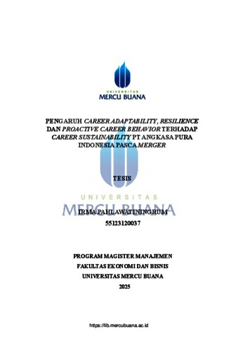PAHLAWATININGRUM, IRMA (2025) PENGARUH CAREER ADAPTABILITY, RESILIENCE DAN PROACTIVE CAREER BEHAVIOR TERHADAP CAREER SUSTAINABILITY PT ANGKASA PURA INDONESIA PASCA MERGER. S2 thesis, Universitas Mercu Buana Jakarta.
