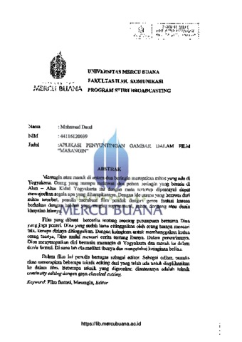 DAUD, MUHAMAD (2018) APLIKASI PENYUNTINGAN GAMBAR DALAM FILM "MASANGIN". S1 thesis, Universitas Mercu Buana Jakarta.