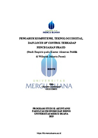 ANASTHASYA, CHEALSEA (2025) PENGARUH KOMPETENSI, TEKNOLOGI DIGITAL, DAN LOCUS OF CONTROL TERHADAP PENCEGAHAN FRAUD (Studi Empiris pada Kantor Akuntan Publik di Wilayah Jakarta Pusat). S1 thesis, Universitas Mercu Buana Jakarta.