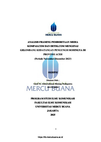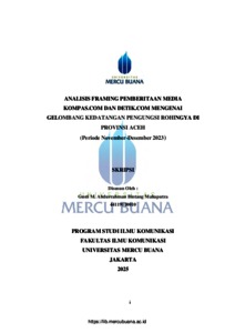 MAHAPUTRA, GUSTI MUHAMMAD ABDURROHMAN BINTANG (2025) ANALISIS FRAMING PEMBERITAAN MEDIA KOMPAS.COM DAN DETIK.COM MENGENAI GELOMBANG KEDATANGAN PENGUNGSI ROHINGYA DI PROVINSI ACEH (Periode November-Desember 2023). S1 thesis, Universitas Mercu Buana Jakarta.