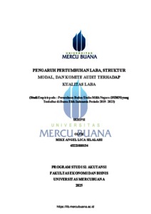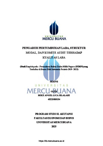 SILALAHI, MIKE ANGEL LICA (2025) PENGARUH PERTUMBUHAN LABA, STRUKTUR MODAL, DAN KOMITE AUDIT TERHADAP KUALITAS LABA (Studi Empiris pada : Perusahaan Badan Usaha Milik Negara (BUMN) yang Terdaftar di Bursa Efek Indonesia Periode 2019- 2023). S1 thesis, Universitas Mercu Buana Jakarta.