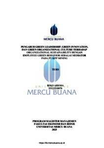 ARIOSA, RIKO (2025) PENGARUH GREEN LEADERSHIP, GREEN INNOVATION, DAN GREEN ORGANIZATIONAL CULTURE TERHADAP ORGANIZATIONAL SUSTAINABILITY DENGAN EMPLOYEE GREEN BEHAVIOR SEBAGAI MEDIATOR PADA PT KPP MINING. S2 thesis, Universitas Mercu Buana Jakarta.