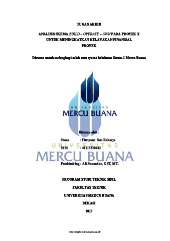RAHARJA, FITRIYANA SARI (2017) ANALISIS SKEMA BUILD – OPERATE – OWN PADA PROYEK X UNTUK MENINGKATKAN KELAYAKAN FINANSIAL PROYEK. S1 thesis, UNIVERISTAS MERCU BUANA - BUNCIT.