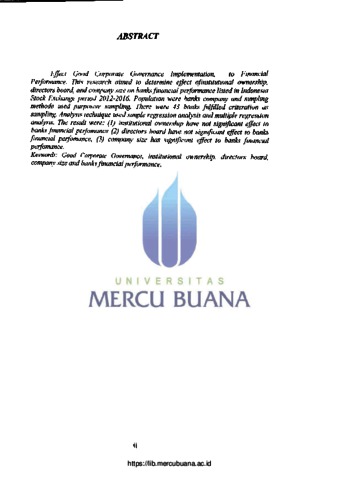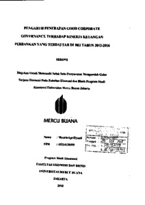 MOURIN APRILLYANTI, MOURIN APRILLYANTI (2018) PENGARUH PENERAPAN GOOD CORPORATE GOVERNANCE TERHADAP KINERJA KEUANGAN PERBANKAN YANG TERDAFTAR DI BEI TAHUN 2012-2016. S1 thesis, Universitas Mercu Buana Jakarta.