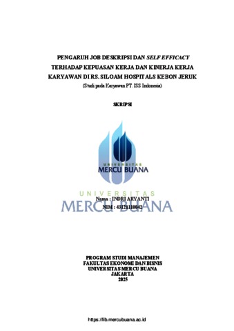 ARYANTI, INDRI (2025) PENGARUH JOB DESKRIPSI DAN SELF EFFICACY TERHADAP KEPUASAN KERJA DAN KINERJA KERJA KARYAWAN DI RS. SILOAM HOSPITALS KEBON JERUK (Studi pada Karyawan PT. ISS Indonesia). S1 thesis, Universitas Mercu Buana Jakarta.