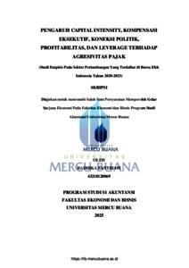 SANTRIAFI, RADHIKA (2025) PENGARUH CAPITAL INTENSITY, KOMPENSASI EKSEKUTIF, KONEKSI POLITIK, PROFITABILITAS, DAN LEVERAGE TERHADAP AGRESIVITAS PAJAK (Studi Empiris Pada Sektor Pertambangan Yang Terdaftar di Bursa Efek Indonesia Tahun 2020-2023). S1 thesis, Universitas Mercu Buana Jakarta.