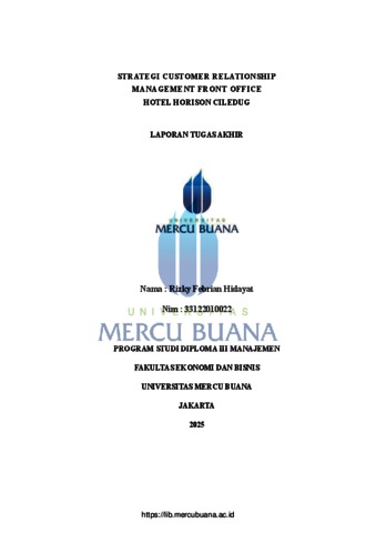 HIDAYAT, RIZKY FEBRIAN (2025) STRATEGI CUSTOMER RELATIONSHIP MANAGEMENT FRONT OFFICE HOTEL HORISON CILEDUG. D3 thesis, Universitas Mercu Buana Jakarta.