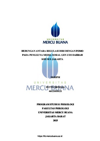 ERNISAL, FETTY (2025) HUBUNGAN ANTARA REGULASI DIRI DENGAN FOMO PADA PENGGUNA MEDIA SOSIAL GEN Z DI DAERAH KHUSUS JAKARTA. S1 thesis, Universitas Mercu Buana Jakarta.
