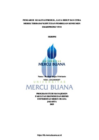 FEBRIANTO, ROYHAN BAGAS (2025) PENGARUH KUALITAS PRODUK , GAYA HIDUP DAN CITRA MEREK TERHADAP KEPUTUSAN PEMBELIAN KONSUMEN SMARTPHONE VIVO. S1 thesis, Universitas Mercu Buana Jakarta.