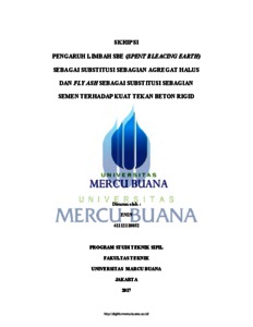 ENIN, ENIN (2017) PENGARUH LIMBAH SBE (SPENT BLEACING EARTH) SEBAGAI SUBSTITUSI SEBAGIAN AGREGAT HALUS DAN FLY ASH SEBAGAI SUBSTITUSI SEBAGIAN SEMEN TERHADAP KUAT TEKAN BETON RIGID. S1 thesis, UNIVERISTAS MERCU BUANA - BUNCIT.