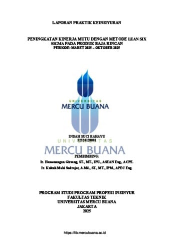 RAHAYU, INDAH SUCI (2025) PENINGKATAN KINERJA MUTU DENGAN METODE LEAN SIX SIGMA PADA PRODUK BAJA RINGAN PERIODE: MARET 2025 - OKTOBER 2025. S1 thesis, Universitas Mercu Buana Jakarta.