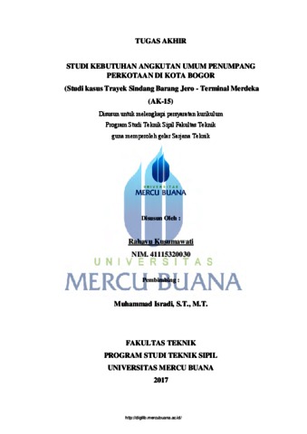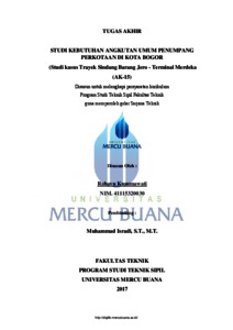 KUSUMAWATI, RAHAYU (2017) STUDI KEBUTUHAN ANGKUTAN UMUM PENUMPANG PERKOTAAN DI KOTA BOGOR (Studi kasus Trayek Sindang Barang Jero - Terminal Merdeka (AK-15). S1 thesis, UNIVERISTAS MERCU BUANA - BUNCIT.