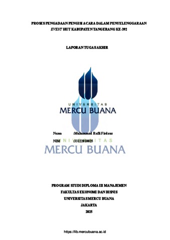FIRDAUS, MUHAMMAD RAFLI (2025) PROSES PENGADAAN PENGISI ACARA DALAM PENYELENGGARAAN EVENT HUT KABUPATEN TANGERANG KE-392. D3 thesis, Universitas Mercu Buana Jakarta.
