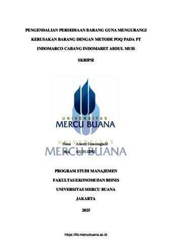 SIMANUNGKALIT, ARIANTO (2025) PENGENDALIAN PERSEDIAAN BARANG GUNA MENGURANGI KERUSAKAN BARANG DENGAN METODE POQ PADA PT INDOMARCO CABANG INDOMARET ABDUL MUIS. S1 thesis, Universitas Mercu Buana Jakarta.