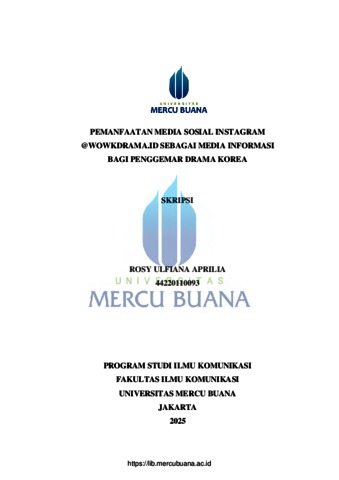APRILIA, ROSY ULFIANA (2025) PEMANFAATAN MEDIA SOSIAL INSTAGRAM @WOWKDRAMA.ID SEBAGAI MEDIA INFORMASI BAGI PENGGEMAR DRAMA KOREA. S1 thesis, Universitas Mercu Buana Jakarta.