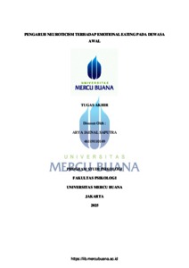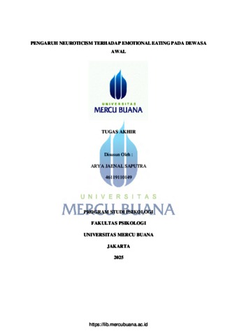 SAPUTRA, ARYA JAENAL (2025) PENGARUH NEUROTICISM TERHADAP EMOTIONAL EATING PADA DEWASA AWAL. S1 thesis, Universitas Mercu Buana Jakarta.