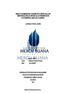 NURYANI, SHABRINA SYAFARIA (2025) PERAN MARKETING COMMUNICATION DALAM MENINGKATKAN PENJUALAN PRODUK DI FAVEHOTEL KELAPA GADING. D3 thesis, Universitas Mercu Buana Jakarta.