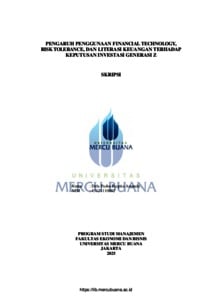 AMANDA, DELA PASHA PUSPITA (2025) PENGARUH PENGGUNAAN FINANCIAL TECHNOLOGY, RISK TOLERANCE, DAN LITERASI KEUANGAN TERHADAP KEPUTUSAN INVESTASI GENERASI Z. S1 thesis, Universitas Mercu Buana Jakarta.