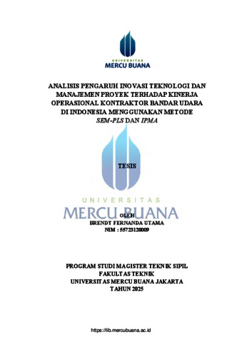 UTAMA, BRENDY FERNANDA (2025) ANALISIS PENGARUH INOVASI TEKNOLOGI DAN MANAJEMEN PROYEK TERHADAP KINERJA OPERASIONAL KONTRAKTOR BANDAR UDARA DI INDONESIA MENGGUNAKAN METODE SEM-PLS DAN IPMA. S2 thesis, Universitas Mercu Buana Jakarta.