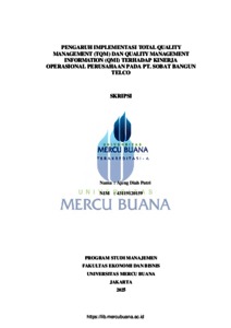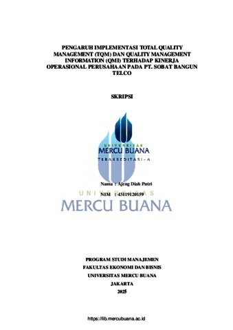 PUTRI, AJENG DIAH (2025) PENGARUH IMPLEMENTASI TOTAL QUALITY MANAGEMENT (TQM) DAN QUALITY MANAGEMENT INFORMATION (QMI) TERHADAP KINERJA OPERASIONAL PERUSAHAAN PADA PT. SOBAT BANGUN TELCO. S1 thesis, Universitas Mercu Buana Jakarta.