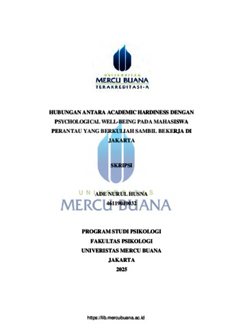 HUSNA, ADE NURUL (2025) HUBUNGAN ANTARA ACADEMIC HARDINESS DENGAN PSYCHOLOGICAL WELL-BEING PADA MAHASISWA PERANTAU YANG BERKULIAH SAMBIL BEKERJA DI JAKARTA. S1 thesis, Universitas Mercu Buana Jakarta.