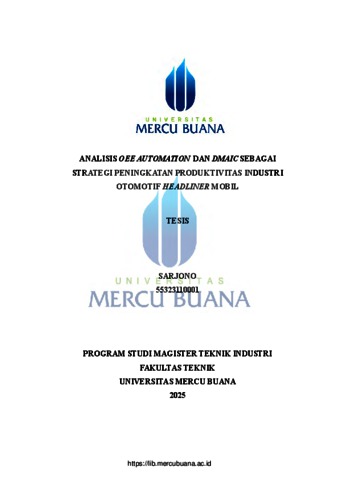 SARJONO, SARJONO (2025) ANALISIS OEE AUTOMATION DAN DMAIC SEBAGAI STRATEGI PENINGKATAN PRODUKTIVITAS INDUSTRI OTOMOTIF HEADLINER MOBIL. S2 thesis, Universitas Mercu Buana Jakarta.