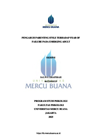 ZHAFIRAH, SALWA (2025) PENGARUH PARENTING STYLE TERHADAP FEAR OF FAILURE PADA EMERGING ADULT. S1 thesis, Universitas Mercu Buana Jakarta.