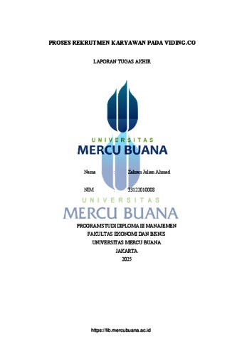 AHMAD, ZAHRAN JULIAN (2025) PROSES REKRUTMEN KARYAWAN PADA VIDING.CO. D3 thesis, Universitas Mercu Buana Jakarta.