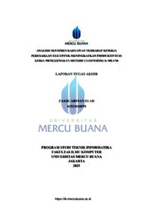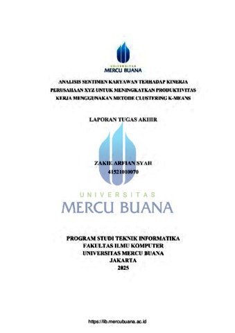 SYAH, ZAKIE ARFIAN (2025) ANALISIS SENTIMEN KARYAWAN TERHADAP KINERJA PERUSAHAAN XYZ UNTUK MENINGKATKAN PRODUKTIVITAS KERJA MENGGUNAKAN METODE CLUSTERING K-MEANS. S1 thesis, Universitas Mercu Buana Jakarta.