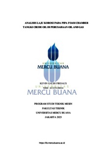 FIRDAUS, KEVIN GALIH (2025) ANALISIS LAJU KOROSI PADA PIPA FOAM CHAMBER TANGKI CRUDE OIL DI PERUSAHAAN OIL AND GAS. S1 thesis, Universitas Mercu Buana Jakarta.