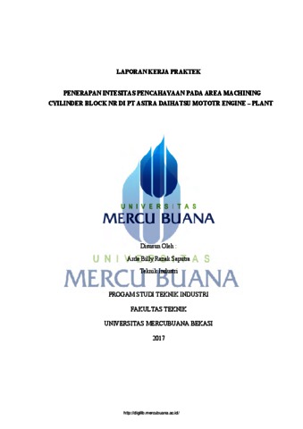SAPUTRA, ARDA BILLY RAZAK (2018) PENERAPAN INTESITAS PENCAHAYAAN PADA AREA MACHINING CYILINDER BLOCK NR DI PT ASTRA DAIHATSU MOTOTR ENGINE – PLANT. S1 thesis, UNIVERISTAS MERCU BUANA - BUNCIT.